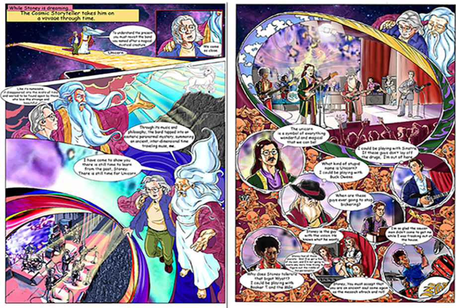 The Cosmic Storyteller by UNICORN Vol. 1 features original music by UNICORN. It was recorded with guest appearances by living and late members of the Association, Steppenwolf, Spirit, Rick Nelson’s Stone Canyon Band, Hal Blaine’s Wrecking Crew, the Marvin Gaye Band, the Quincy Jones Orchestra, and the Ray Charles Orchestra.